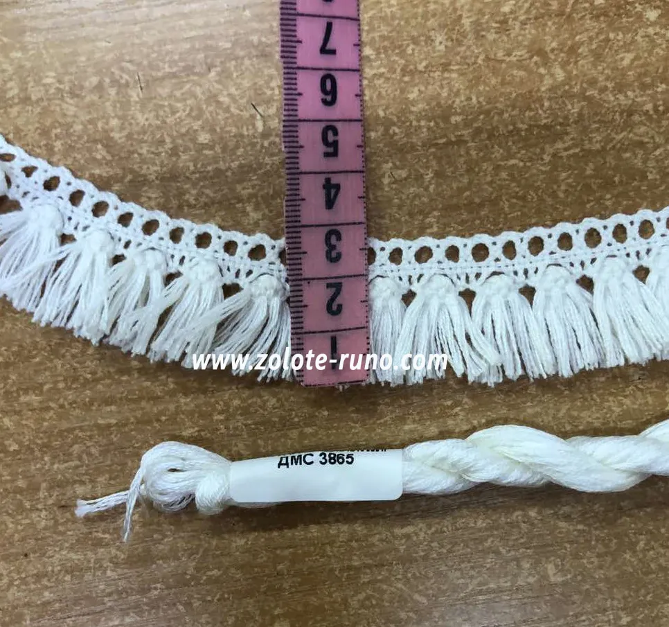 Бахрома — кружево. Используется как обшивка краев рушников, одежды, скатерти ,украшение к занавесям, мебели, абажурам.